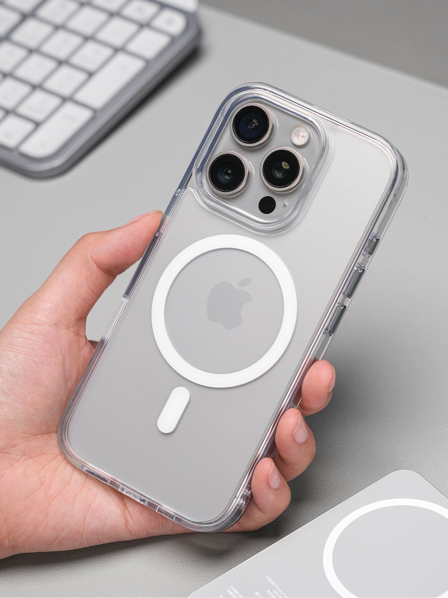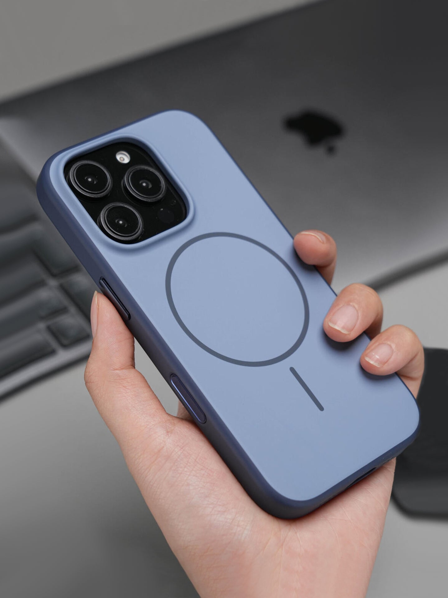 Comfortable to touch and hold, with reinforced camera borders for durability in daily use. Supports MagSafe.